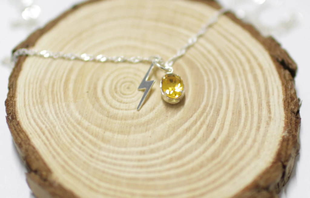 Este colar é uma homenagem à energia vibrante de Iansã orixá dos ventos, tempestades e transformações. O Citrino, pedra do sol, é conhecido por atrair prosperidade, dissipar medos e despertar o poder pessoal. Lapidado em forma oval, ele representa o fluxo da vida em constante renascimento. O pingente de raio simboliza o impacto da mudança e a coragem de enfrentar novos caminhos.